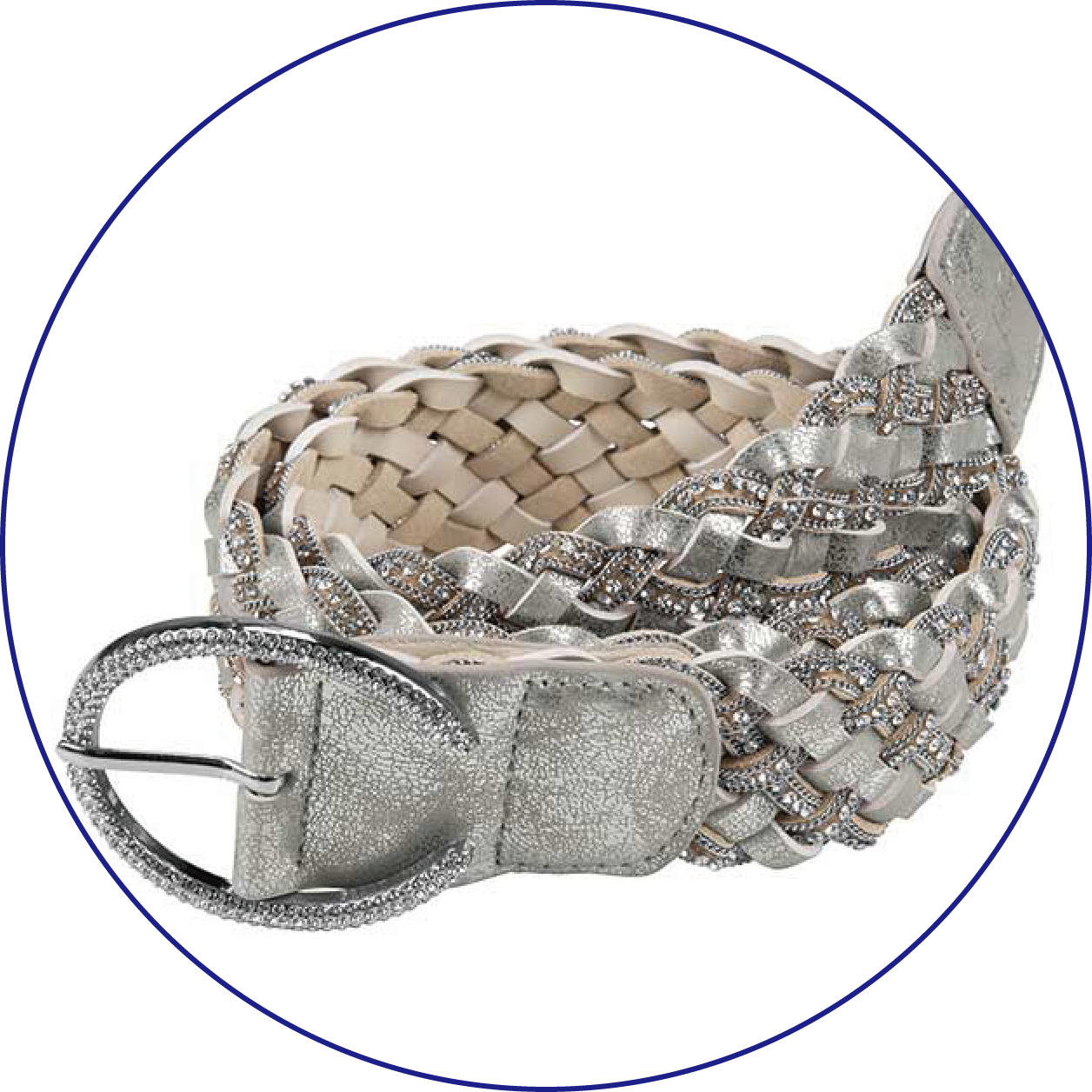 Point5バックルと編み込み部分に輝く